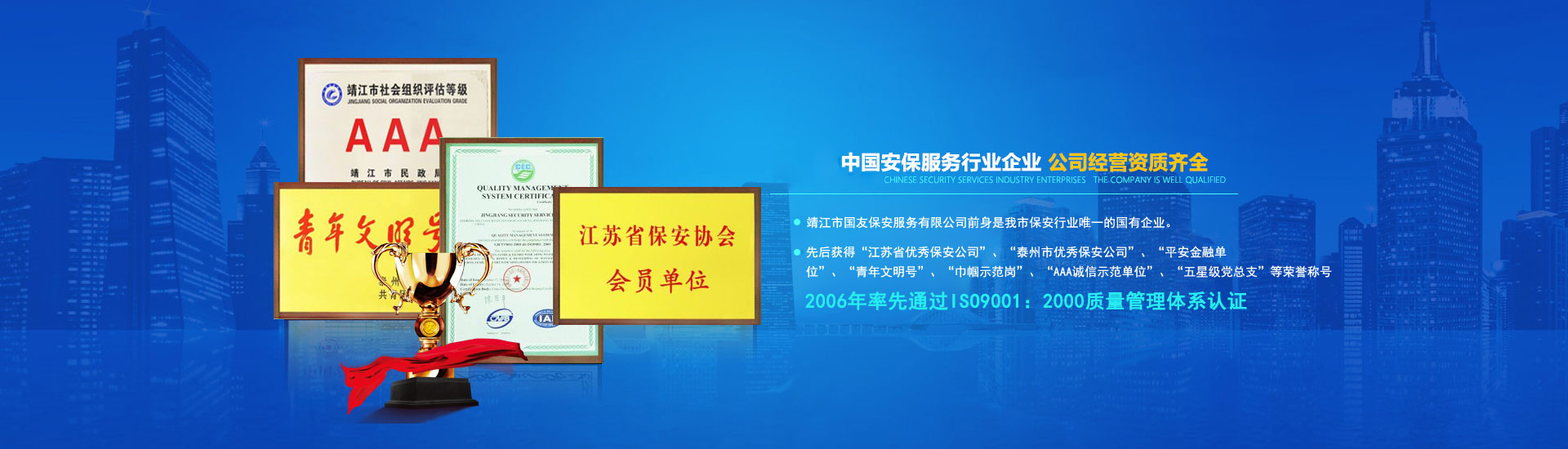 靖江市國友保安服務有限公司前身為靖江市保安服務總公司,成立于1988年12月,是我市保安行業唯一的國有企業。公司一直致力于專業化、規范化的保安服務,現有注冊資本1028.8萬元(國有獨資)。公司位于南環東路1號,占地面積8000余㎡,建筑面積1萬余㎡,公司地理位置優越,內部環境優美?,F有高級保安員40人,中級保安員109人,700余名保安人員全部通過國家職業技術技能鑒定,取得保安服務從業資格,公司服務范圍涵蓋政府機關、金融機構、企事業單位,現有服務客戶120余家。2005年起,公司開始從事武裝押運服務,現有制式防彈運鈔車36輛、標...